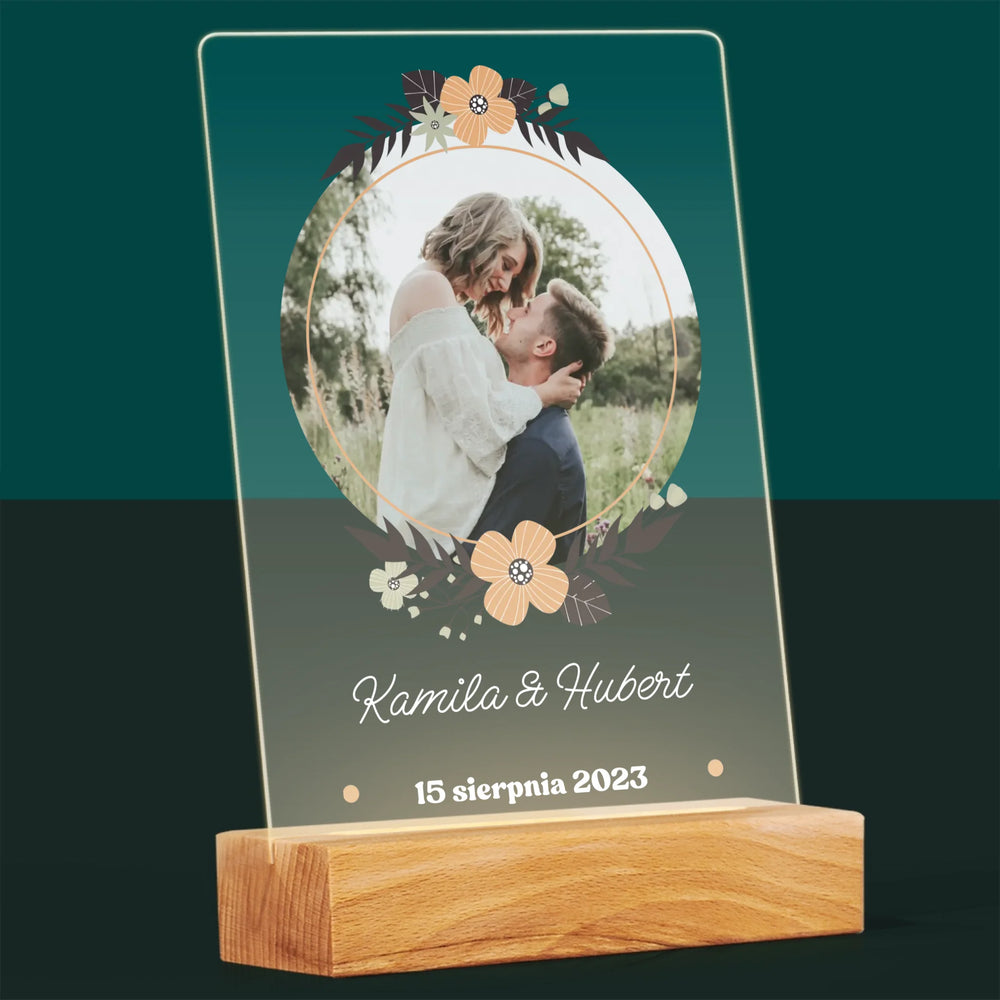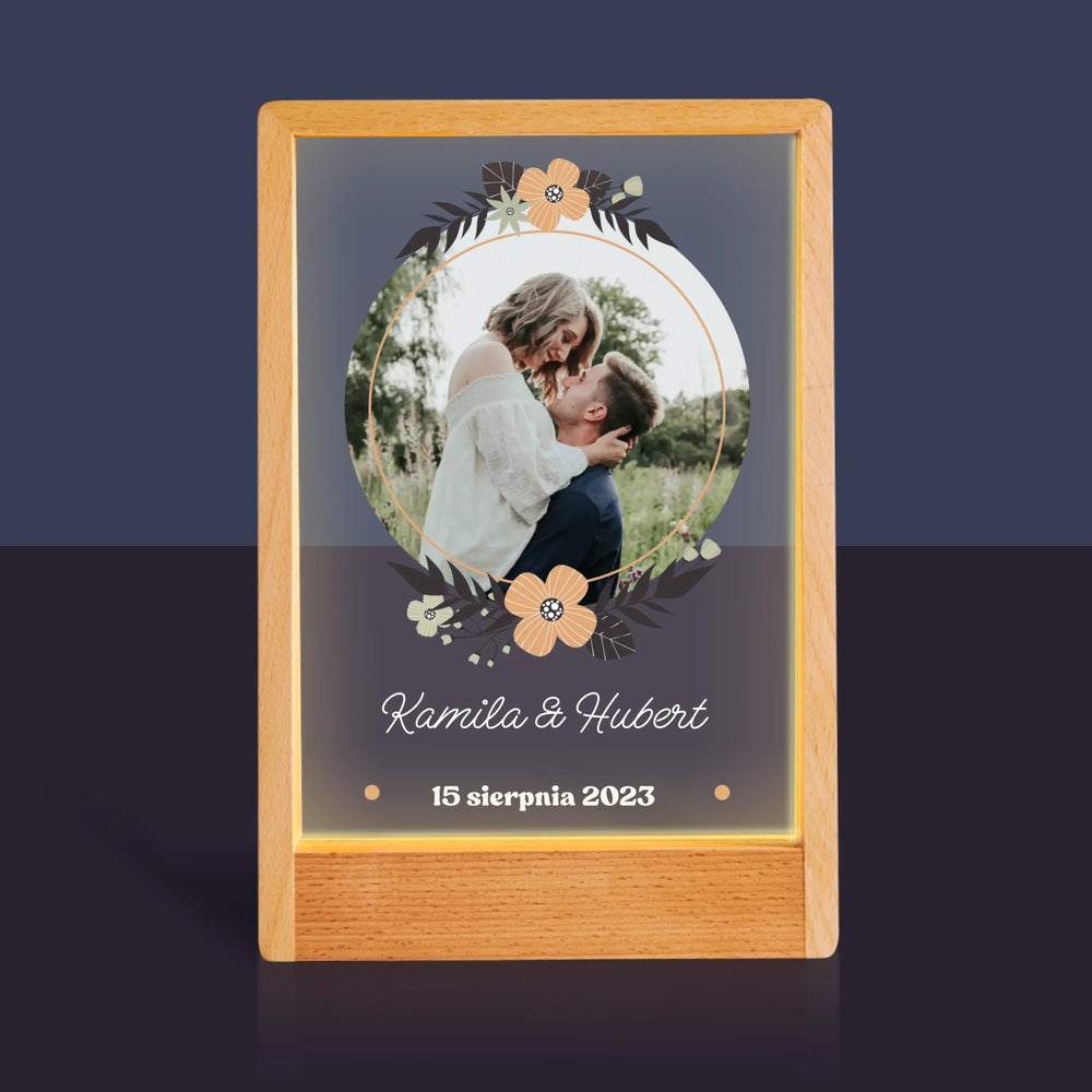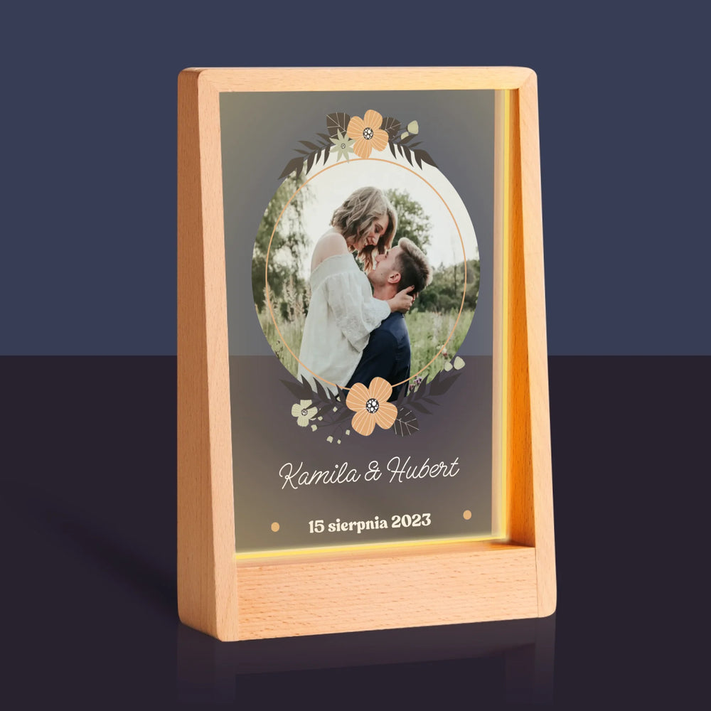 Zdjęcie i Podpis: Zakochani - Wydruk na szkle akrylowym w ramce LED