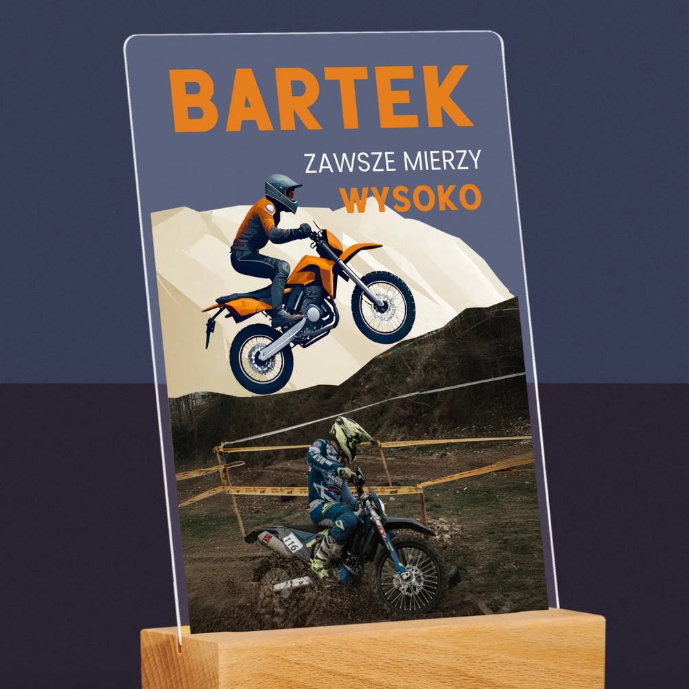 Zdjęcie I Podpis: Zawsze Mierzy Wysoko - Wydruk na szkle akrylowym LED