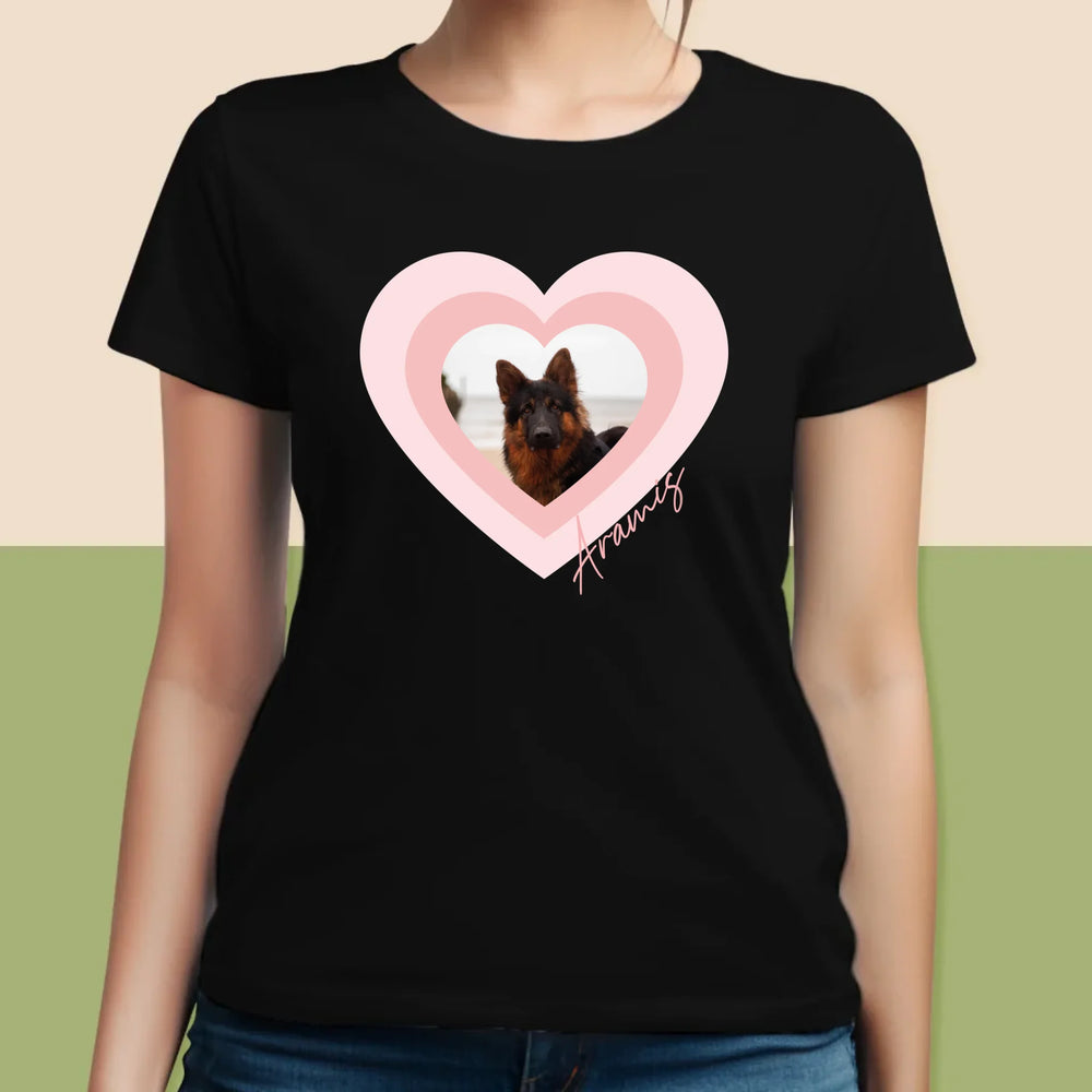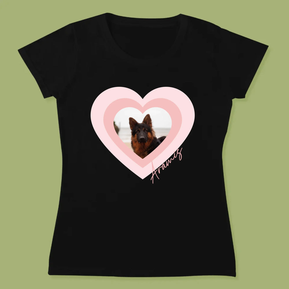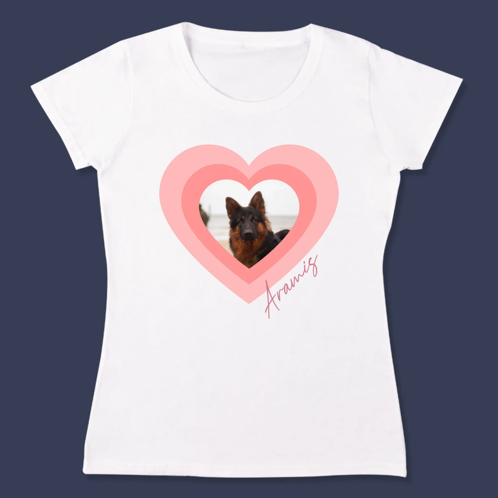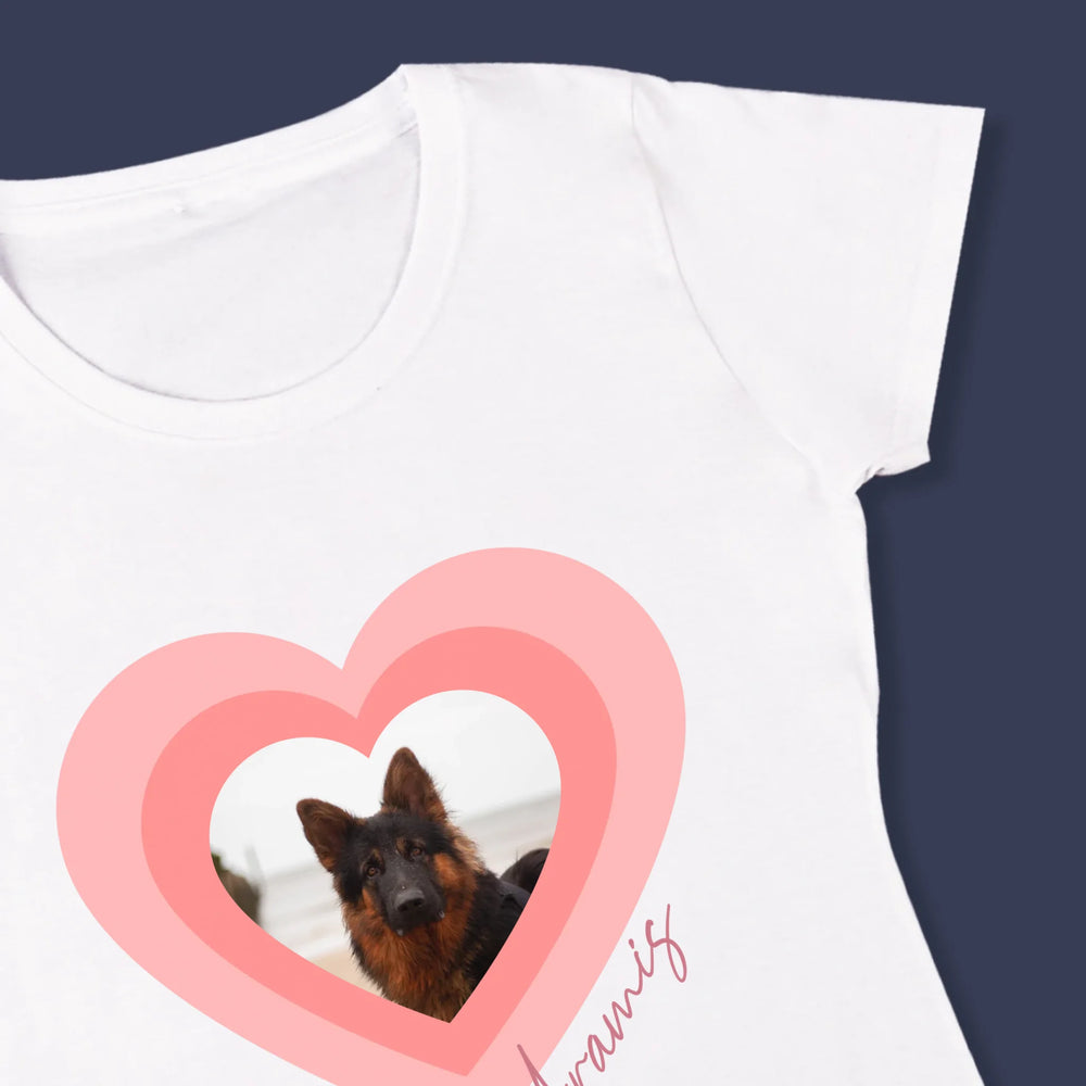 Zdjęcie i Podpis: Zdjęcie Pupila w Sercu - Personalizowana Koszulka Damska