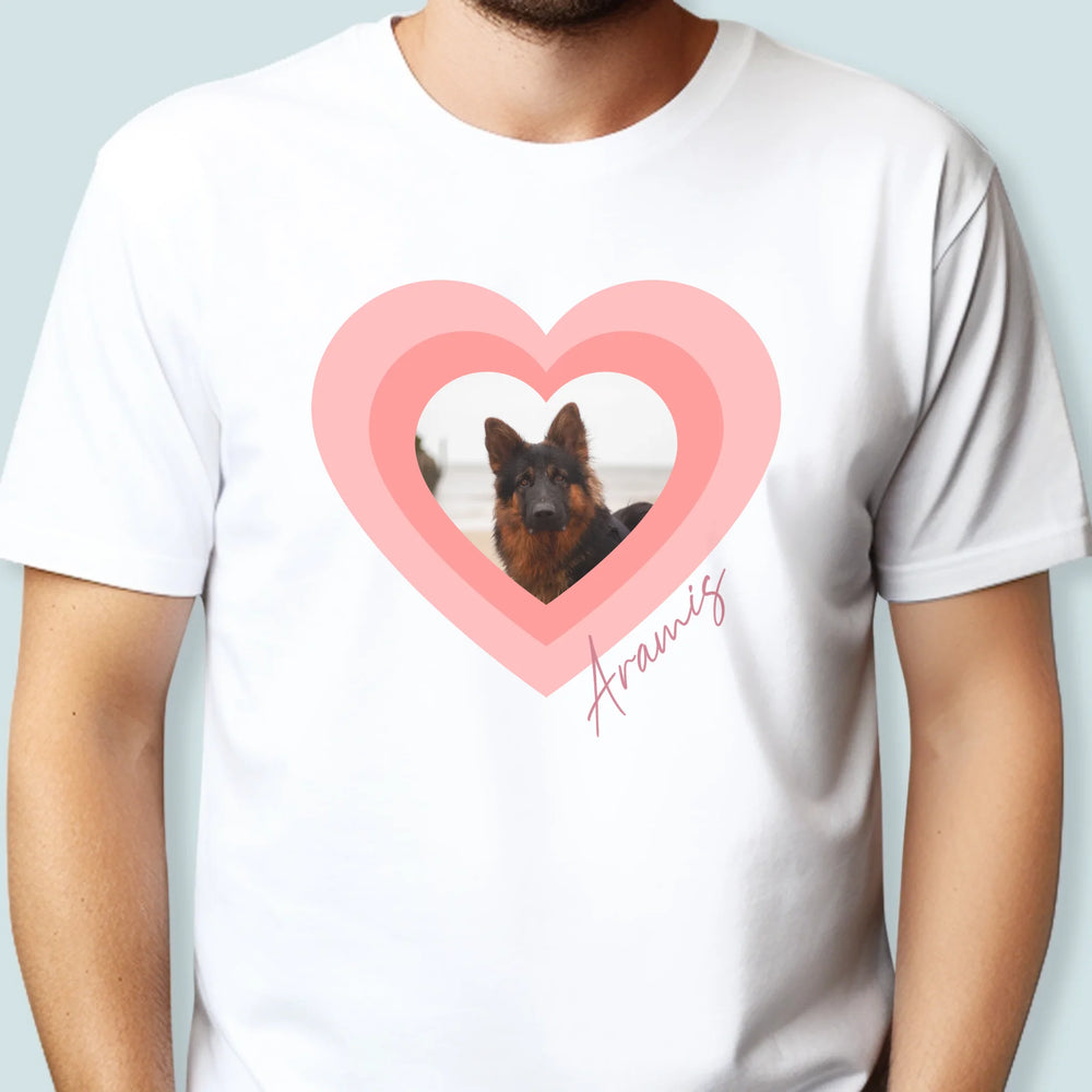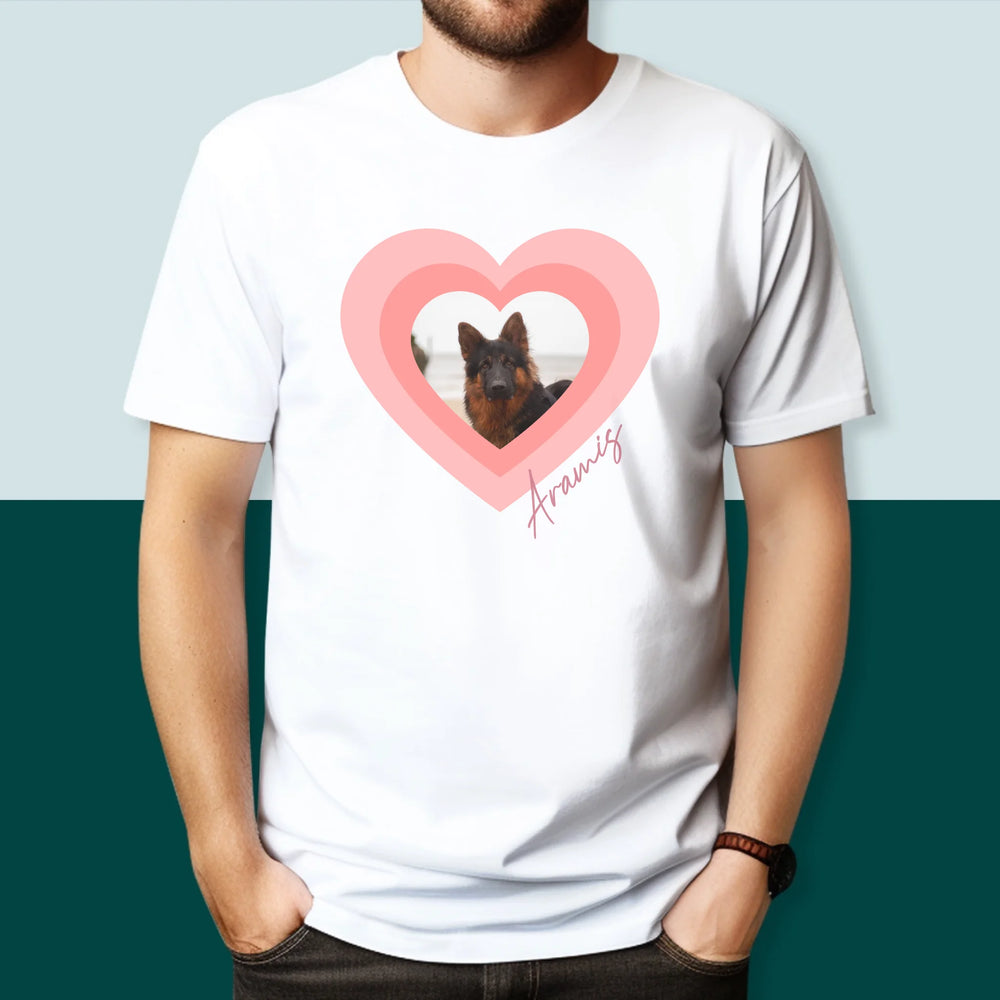 Zdjęcie i Podpis: Zdjęcie Pupila w Sercu - Personalizowana Koszulka Męska