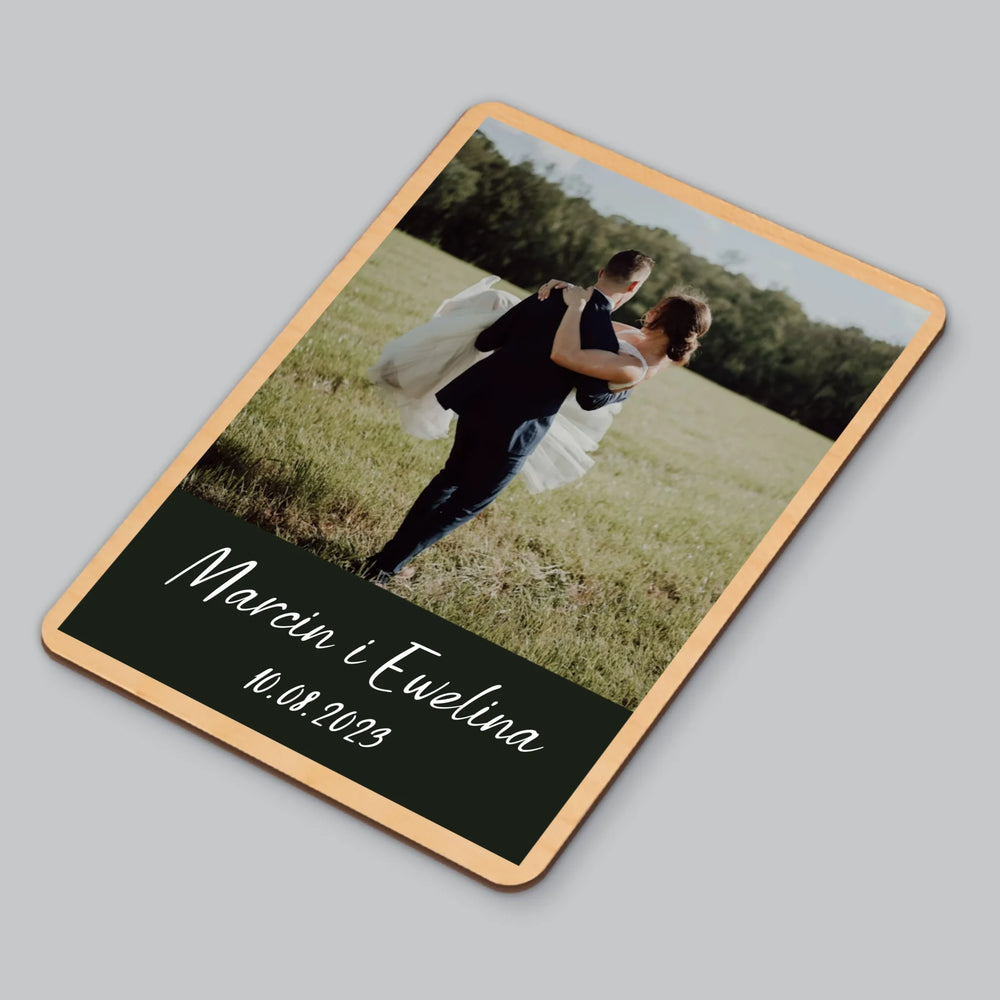 Zdjęcie i Podpis: Zdjęcie Ślubne - Magnes drewniany