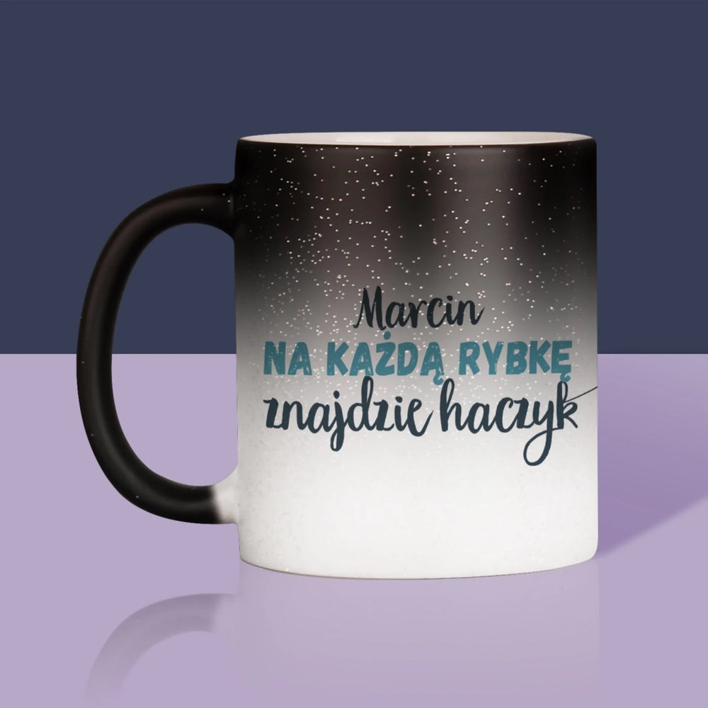 Zdjęcie i Podpis: Znajdzie Haczyk - Kubek z nadrukiem