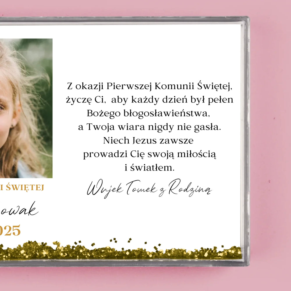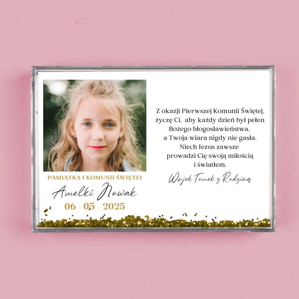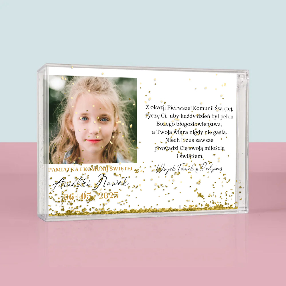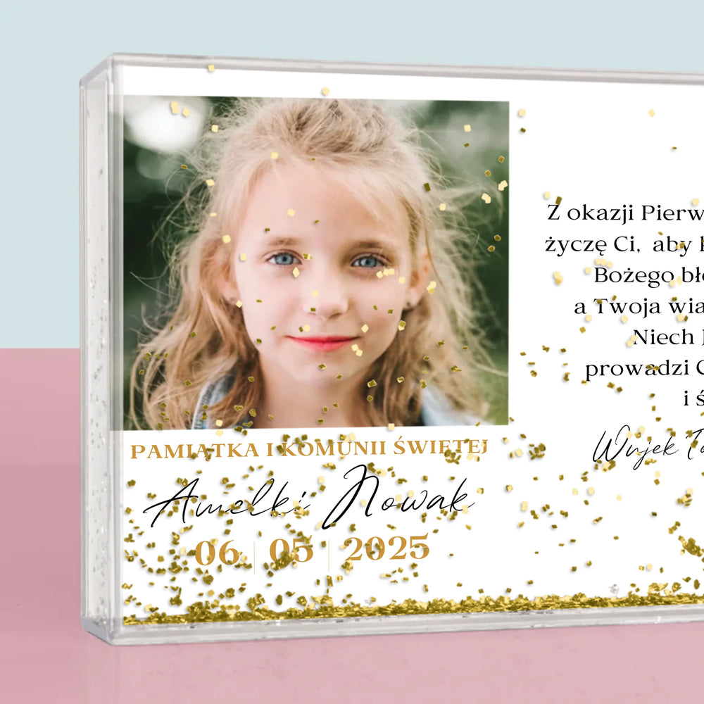 Zdjęcie i Podpis: Życzenia z Okazji Pierwszej Komunii Świętej - Personalizowana Ramka Wodna