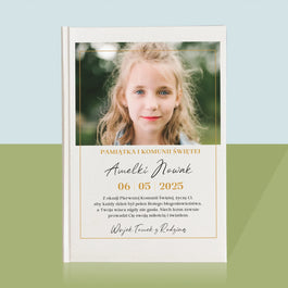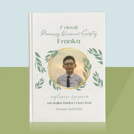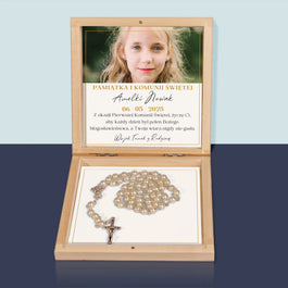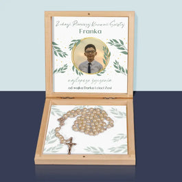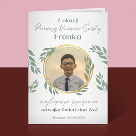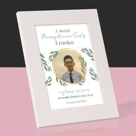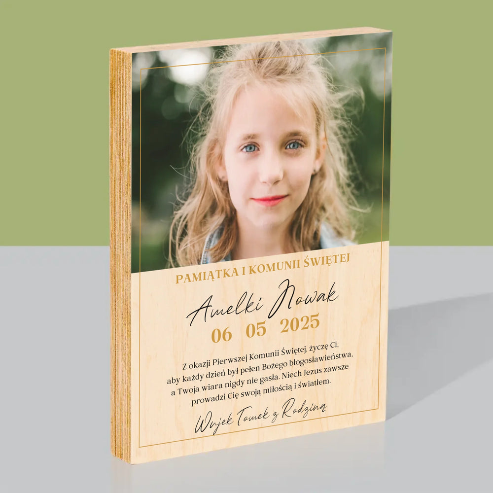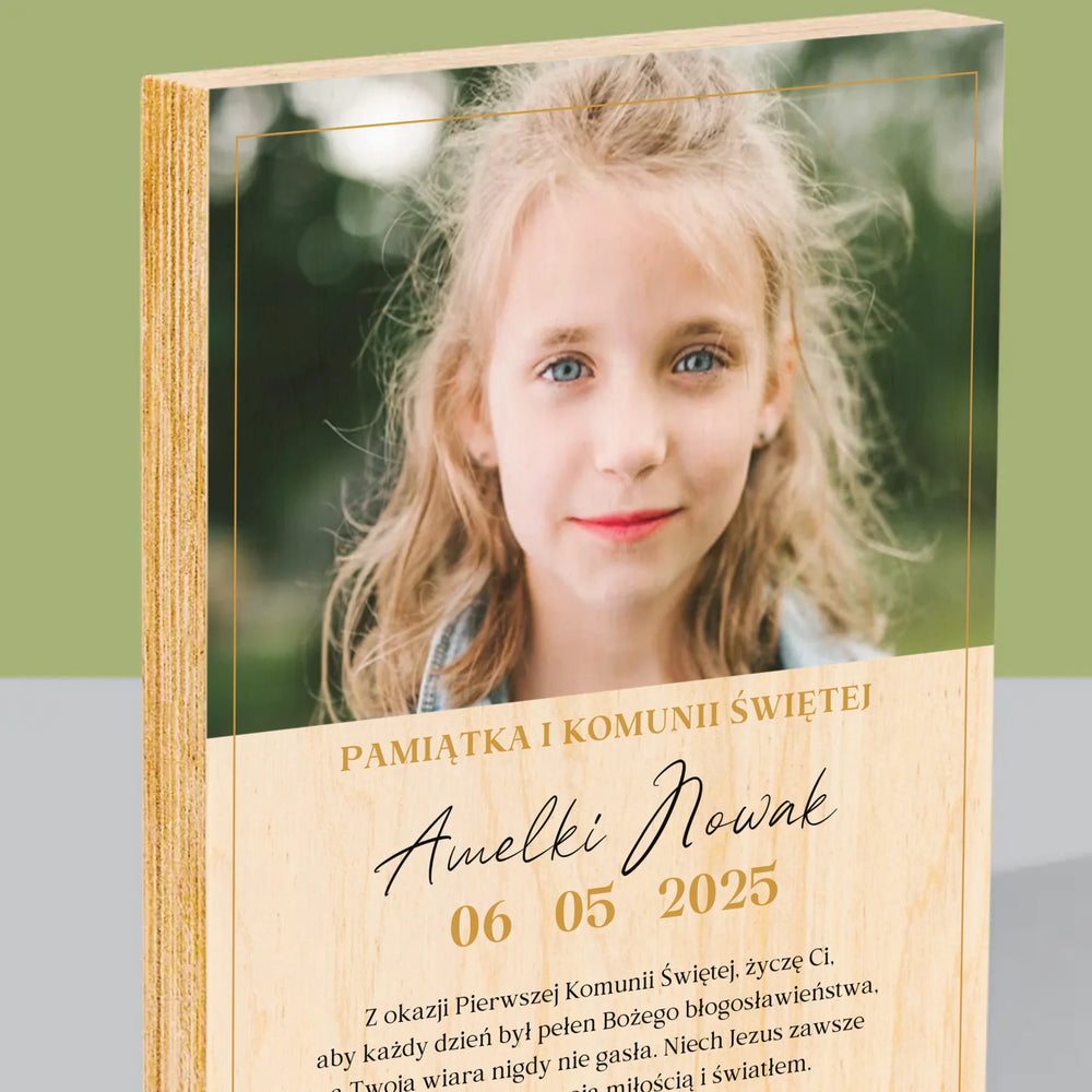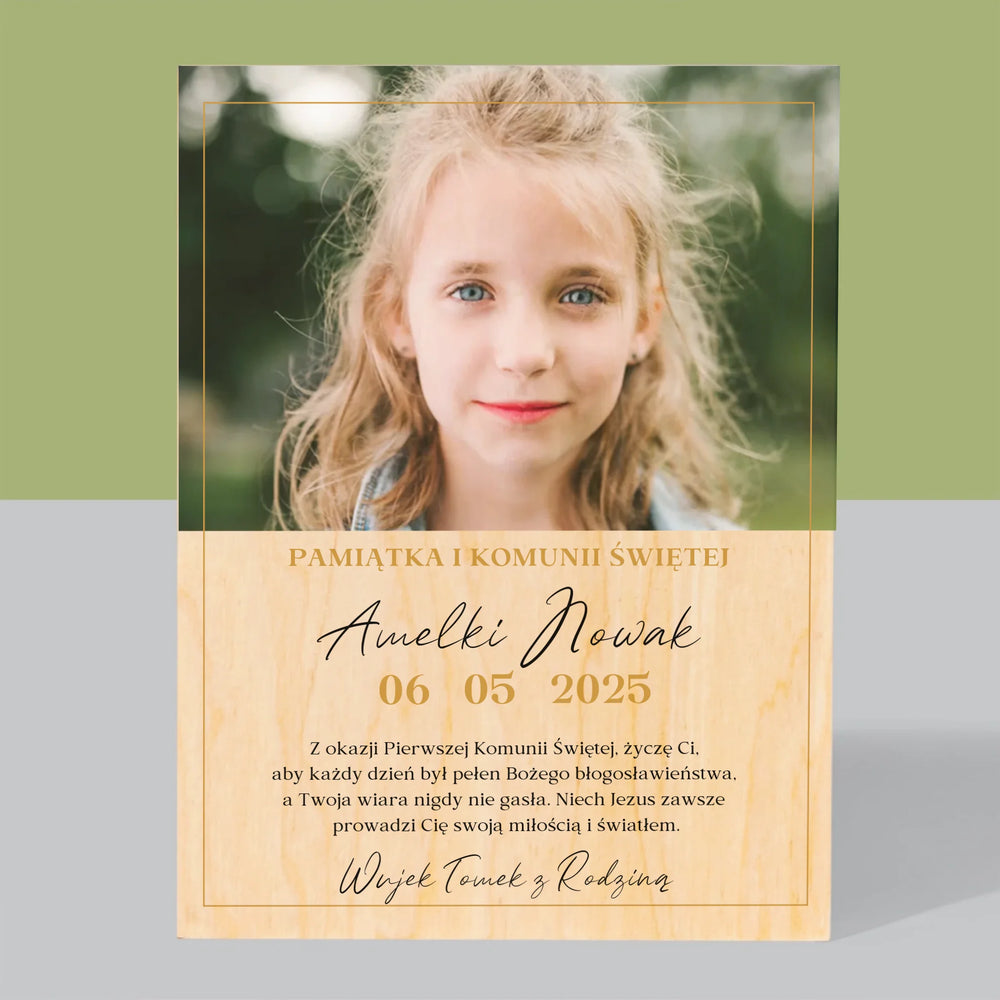Zdjęcie i Podpis: Życzenia z Okazji Pierwszej Komunii Świętej - Wydruk na drewnie - Pion
