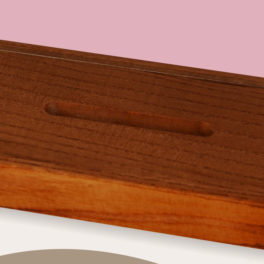 Wykonana z bejcowanego i lakierowanego drewna jesionowego.